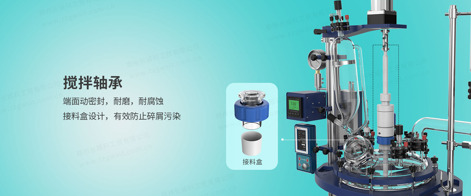 2、攪拌軸承設計:端面動密封,接料盒設計,減少碎屑污染,雙深溝球軸承,運行平穩,靜音;